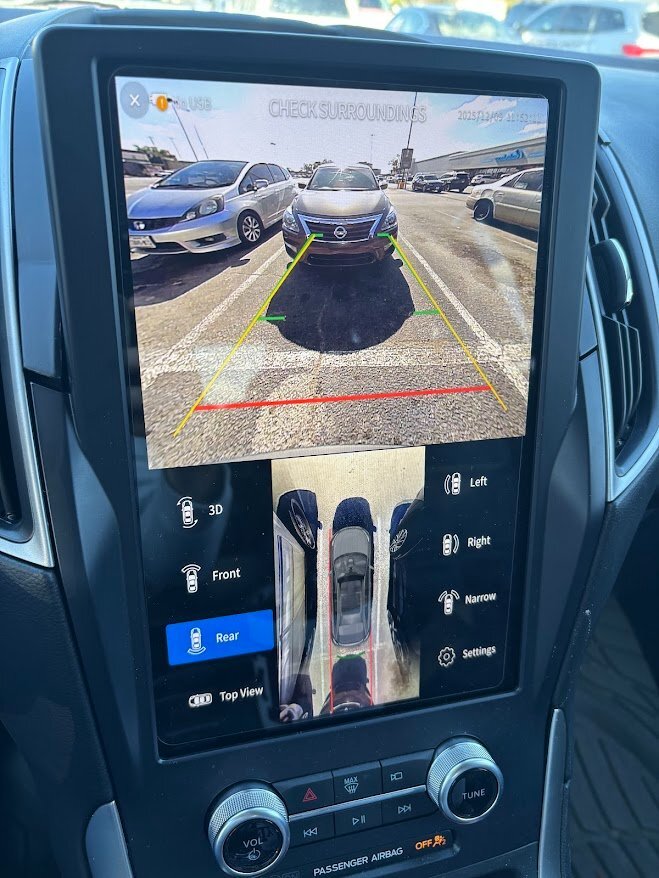 This one took the most work. Like I mentioned in my previous post I wanted to retain the factory camera and system, and just add the new camera for the 360 view. I had to get creative. I decided to embed the camera in the logo. Marked and dremel’d out a custom recess behind the Ford emblem. Mounted the camera flush and secured it internally. Ran the wiring through the hatch. Calibrated the image afterward so the lines lined up correctly