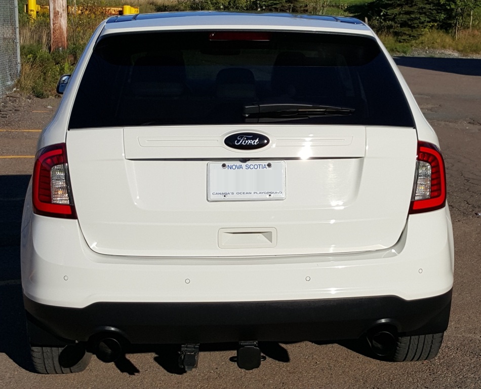 Well...... this took longer than one day for me but I finished today lol. I wasn't happy with my rear end ... err ...my Edge's rear end to be more specific. Over the last few weeks here are the changes I made: 1. Put a new "Ford" emblem on the rear 2, Swapped out the tails for LED tails 3. Replaced the stock tips with a set of flat black powder coated tips 4. Sanded and repainted the aftermarket trailer hitch and wiring drop 5. Put a flat black hinged hitch cover on so when I need to use the hitch the cover just flips up so the receiver can go in easily 6. Debadged the rear ex for the "Ford" emblem - I tend to like "the clean look" on my vehicles I've attached the "before" and "after" pictures. I'm glad I got this finished today as it's getting a little chilly here to paint outside lol. -