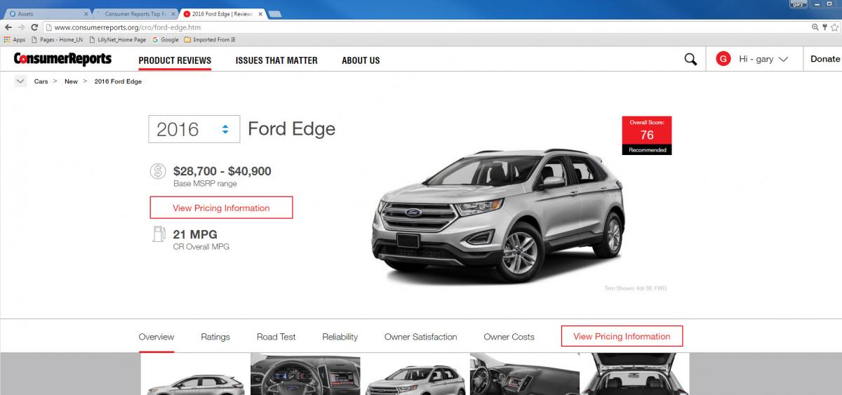 See link for Edge being identified as one of the top rated american cars based on Consumer Reports. Also of note the number of Fords present in the list. http://www.msn.com/en-us/autos/autos-passenger/highest-scoring-american-vehicles/ss-BBpSLBD