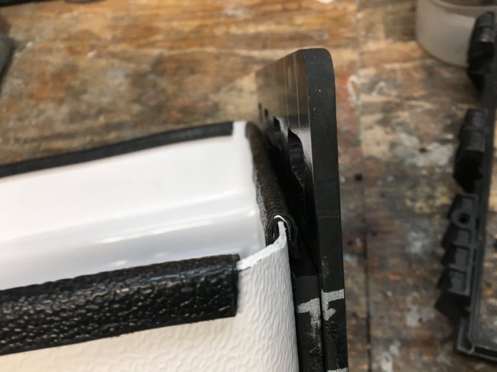 I also made some subtle changes to the mold. This rounded corner was difficult for the ABS to wrap around smoothly. The outside corners are now square. The mold needs wet sanding and polishing before it will be ready to mount to the wood box.