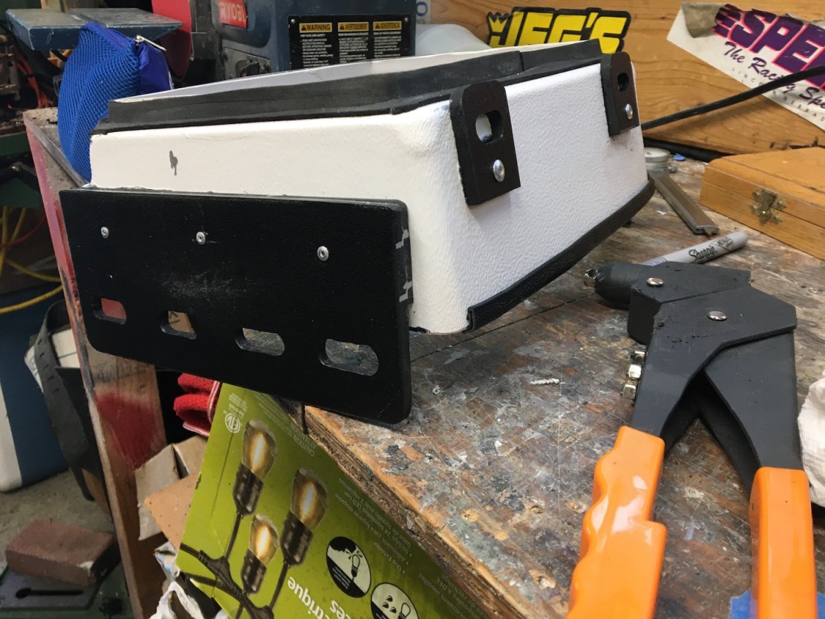 I have replaced all but one of the the latches with ABS, and it looks much cleaner. The glue I used melts the ABS then when it drys the parts are welded together. The rivets held the parts while the glue dried and adds a mechanical connection. Most likely the rivets will not be used on the finished units as the glue is more than enough. This is one of the things I learned with this prototype. These are the same parts in aluminum on the first prototype. This is the one aluminum part remaining on the Adaptor.