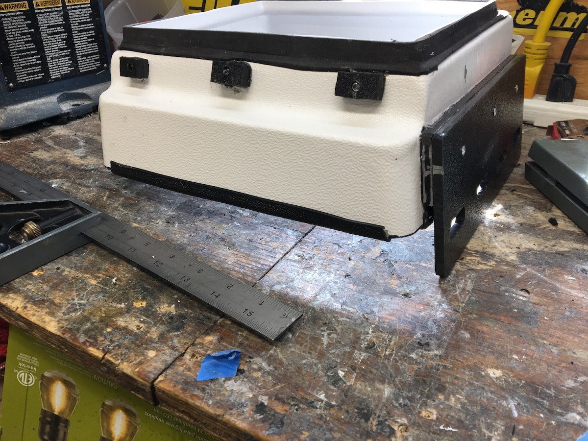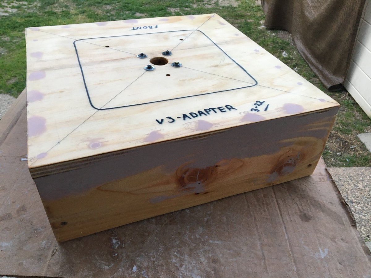 This is the new lid for the Adaptor mold wood box. It is larger to allow more ABS to draw from as it is pulled over the mold. This should allow the use of thicker ABS that will produce a stronger part. I will keep rebuilding it until it works properly and makes quality parts.