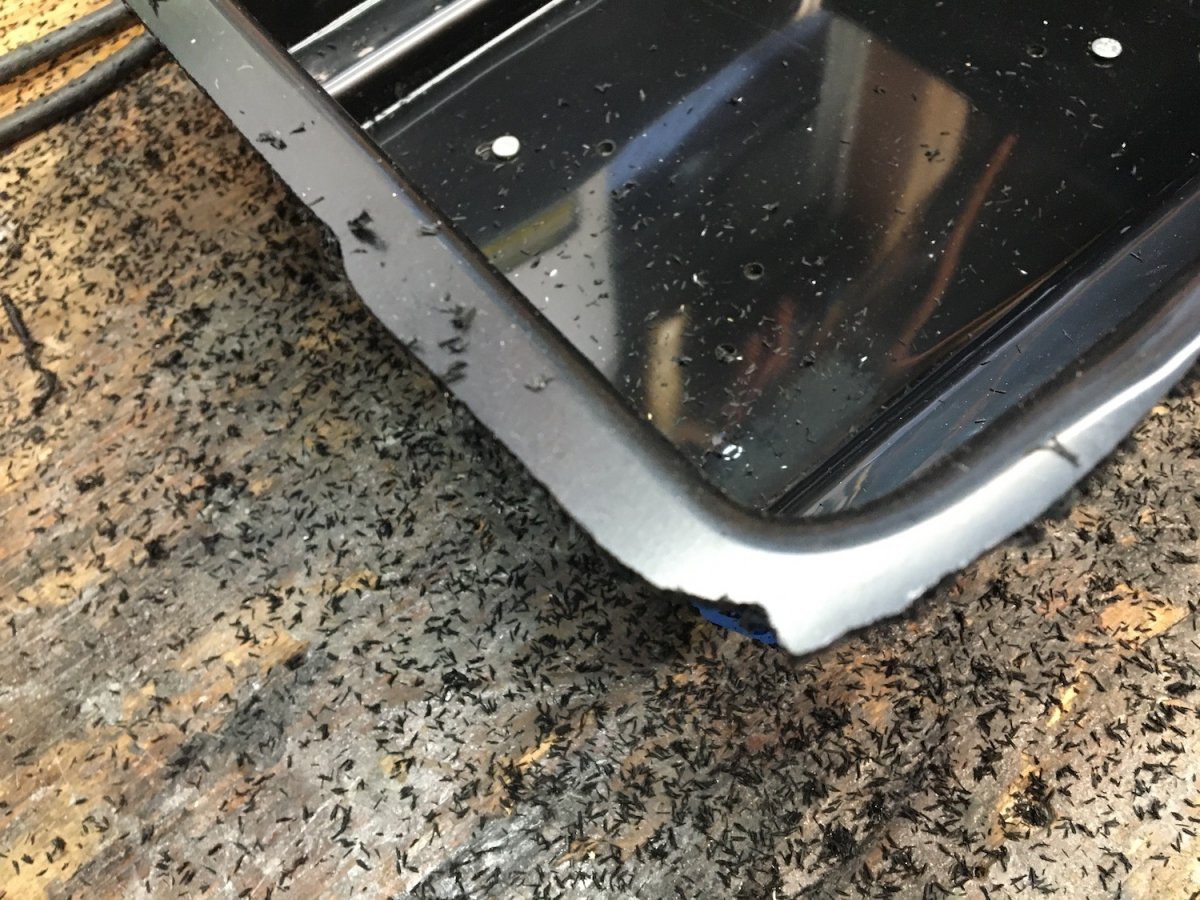 5. Started work on the Adaptor today. Day Four. After cutting it out and trimming, more tape is added to protect the edges. The Adaptor is squared up to sit flat, and then the edge protector is added. This edge protector also helps seal the adaptor to the lid gasket . Once the edge protector is installed, more tape is added for protection.