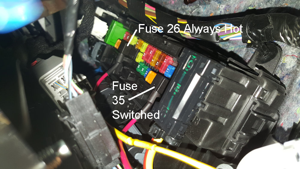 I'm officially one week into ownership of my (new to me) '16 Edge Ti and I've learned a 'lot' from this forum. I think it's time I gave a little back so here are a few photos of 'improvements' I've made where photos weren't available before. 1. There's a discussion about the cabin fuse box. Some asked about access, others about which fuses to use for accessories. Someone suggested crawling under the dash on your back and reaching up to the fuse box. I'm 71 and needed an alternative I'll show you my solutions with photos. I've installed a dash cam that uses two circuits, one switched for the normal continuous shooting mode, the other 'always hot' for parking security. I ended up using fuse 35 (labeled as a spare) for the switched circuit and 26 (passenger switch illumination) for the always hot. (photo below) A couple of reasons for these choices: 1. They're both in the left row so easier to reach 2. The add-a-fuse can be oriented properly (yes, there's a right and wrong way to use these) so the added fuse is protecting the accessory and not drawing juice through the 'primary' fuse. In both cases I pulled the original fuse using a long needle nose forceps (Harbor Freight, see pic below) gaining access through the (removed) change cubby portal. That drawer is only held in the dash by four metal clips (see photo). If you open the drawer and stick your hand inside (palm up) then pull toward the rear of the car those clips will release no muss, no fuss. Shove a good light up under the dash and you'll be able to see the fuse box easily. Just so you can get oriented, in the fuse box photo the 'top' of the box is at the left side. I couldn't get a decent angle with a camera. Here's a link to the add-a-fuse that works in the 15 and later Edge.