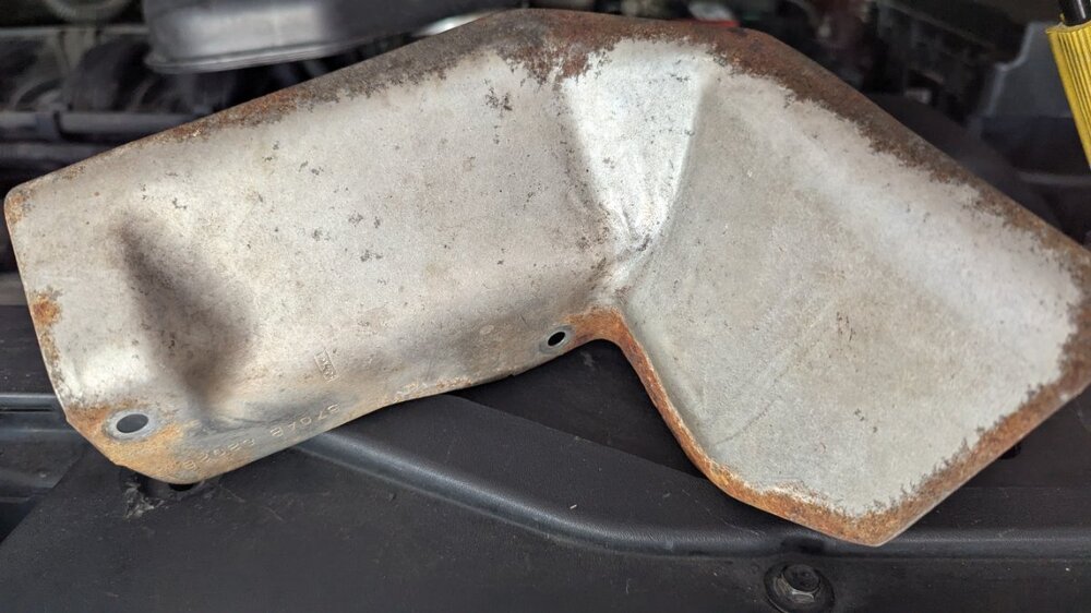 Trying to determine where this heat shield goes. It has two 8mm bolts, goes somewhere around the power steering or PTU area. I cannot tell where. The numbers on it to not correspond with any diagrams I can find.