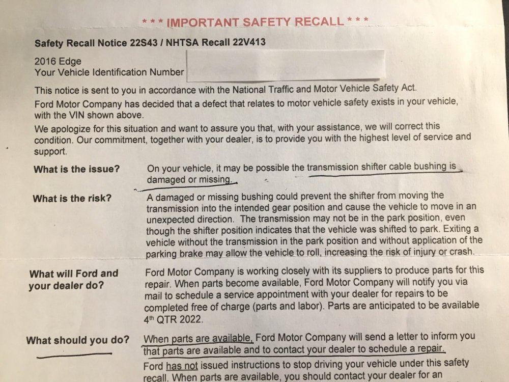 Haz Posted July 9, 2022 Report Share Posted July 9, 2022 I appreciate you quoting from the photo caption, which is unrelated to underhood fire risk and lacks any need to park involved vehicles outside, because that Safety Recall 22S43 has been previously detailed in the Forum, and affected Edge owners will benefit from your reminder... The 'Possible Engine Fires' headline and underhood fire topic of the article relates to Safety Recalls 22S36 & 22S48, which apply to 2021 Expedition and Navigator, as well as Safety Recall 22S47 which applies to 2021/2022 Corsair and 2022 Maverick. Good luck! 1 Quote Link to comment Share on other sites More sharing options...