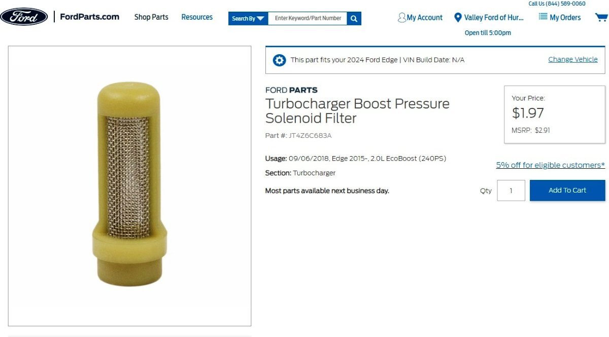 Haz Posted March 22, 2024 Report Share Posted March 22, 2024 (edited) Supplemental images of Turbocharger Oil Supply Tubes from the Edge Workshop Manuals... EcoBoost 2.0L illustration - The filter is located on the Engine oil supply-side of the Tube. 2.0L EcoBoost Turbocharger Oil Supply Tube 2.7L EcoBoost Turbocharger Oil Supply Tube, Left Hand 2.7L EcoBoost Turbocharger Oil Supply Tube, Right Hand Example-listings of filters found on Ford's online parts-selling website... 2.0L EcoBoost - Two different part numbers and three listings are shown for various manufacturing dates, so searching by vehicle VIN would be advisable to ensure proper filter fitment. 2.7L EcoBoost - One listing found, though searching by vehicle VIN is always a good idea. Edited March 22, 2024 by Haz 3 1 Quote Link to comment Share on other sites More sharing options...