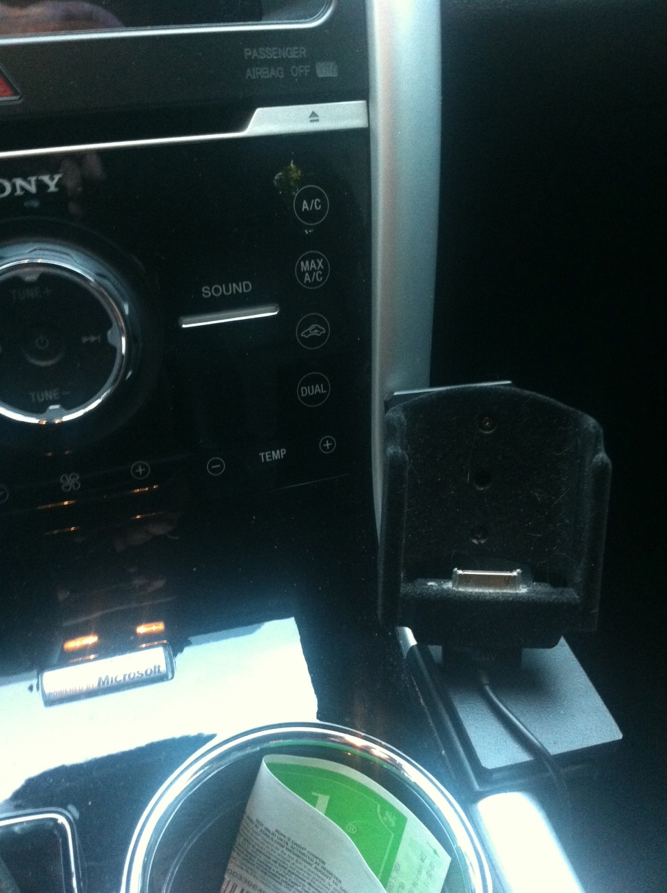 wilsons66604 Posted August 18, 2011 Report Share Posted August 18, 2011 (edited) Could you show a picture of your mount? Thanks. This is the mount on the right side of center stack. It grabs onto the silver trim and stays put great. I'm able to remove it with no problems (I didn't use the dbl sided tape it came with) I bought a black iPhone cable and routed it to the USB port. Nothing fancy. It just comes out of the armrest and the lid has no problem shutting with it there. Edited August 18, 2011 by wilsons66604 3 Quote Link to comment Share on other sites More sharing options...